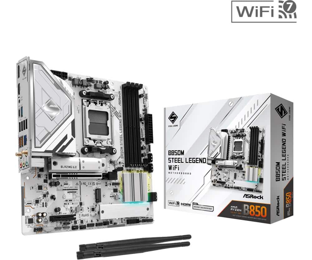 Mainboard | ASROCK | AMD B850 | SAM5 | Micro-ATX | Memory DDR5 | Memory slots 4 | 4xPCI-Express 4.0 4x | 1xPCI-Express 5.0 16x | 1xM.2 | 1xHDMI | 1xDisplayPort | 1xAudio-In | 1xAudio-Out | 1xMicrophone | 4xUSB 2.0 | 3xUSB 3.2 | 1xUSB-C | 1xRJ45 | B850MSTEELLEGENDWIFI