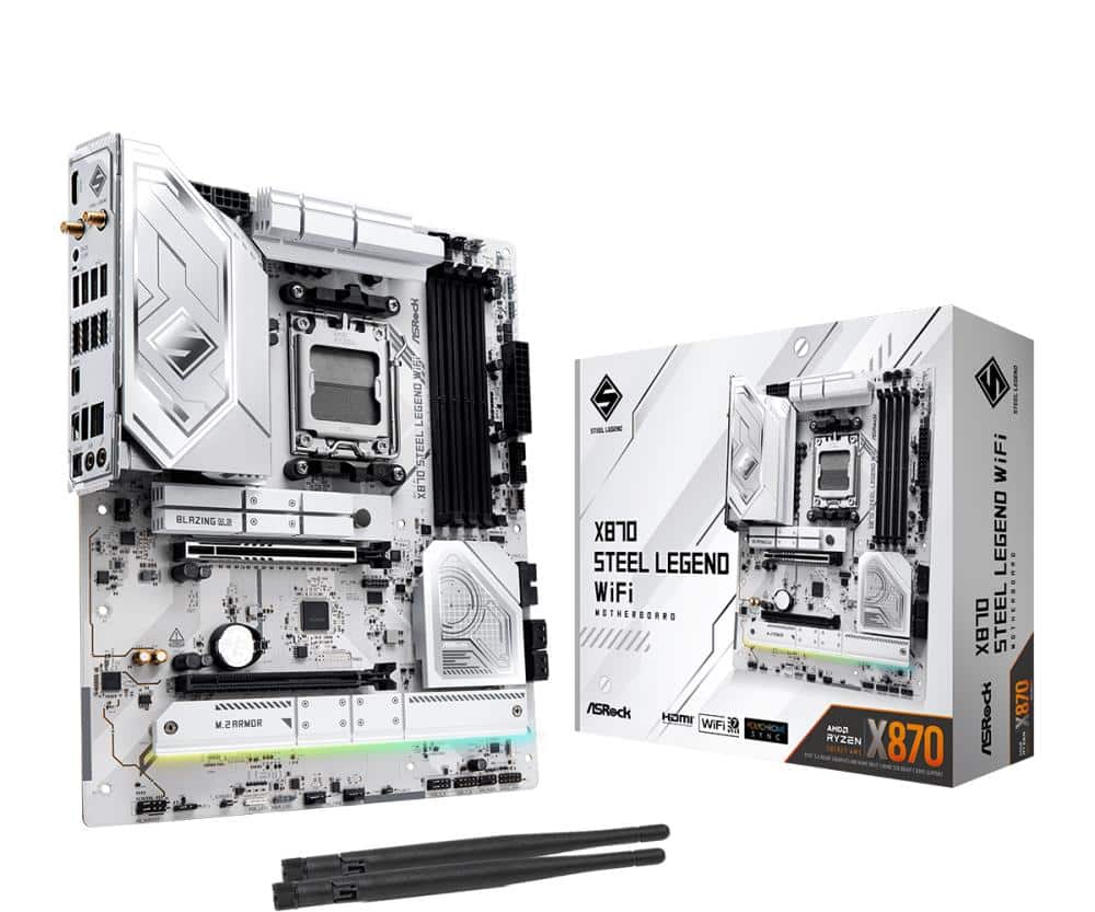 Mainboard | ASROCK | AMD X870 | SAM5 | ATX | Memory DDR5 | Memory slots 4 | 1xPCI-Express 4.0 16x | 1xPCI-Express 5.0 16x | 4xM.2 | 1xHDMI | 4xUSB 2.0 | 5xUSB 3.2 | 2xUSB-C | 1xOptical S/PDIF | 1xRJ45 | 2xAudio port | X870STEELLEGENDWIFI