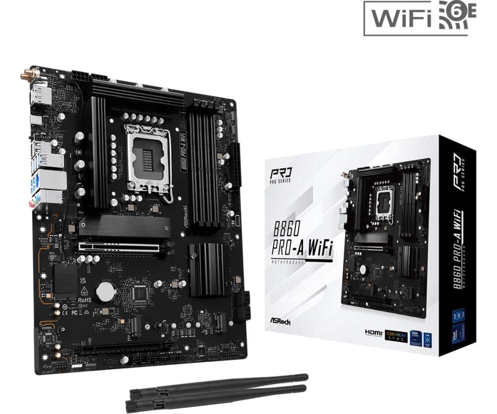 Mainboard | ASROCK | Intel B860 Express | LGA1851 | ATX | Memory DDR5 | Memory slots 4 | 1xPCI-Express 4.0 16x | 1xPCI-Express 5.0 16x | 1xM.2 | 1xHDMI | 1xDisplayPort | 1xAudio-In | 1xAudio-Out | 1xMicrophone | 2xUSB 2.0 | 6xUSB 3.2 | 1xUSB-C | 1xRJ45 | B860PRO-AWIFI