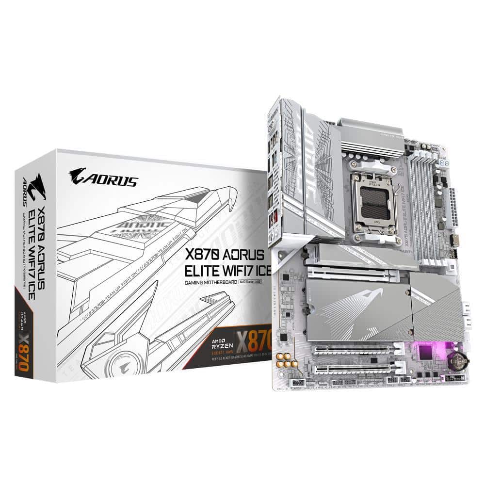 Mainboard | GIGABYTE | AMD X870E | SAM5 | ATX | Memory DDR5 | Memory slots 4 | 1xPCI-Express 3.0 2x | 1xPCI-Express 4.0 4x | 1xPCI-Express 5.0 16x | 4xM.2 | 1xHDMI | 4xUSB 2.0 | 6xUSB 3.2 | 2xUSB-C | 1xOptical S/PDIF | 1xRJ45 | 2xAudio port | X870AELITEWF7ICE1.1