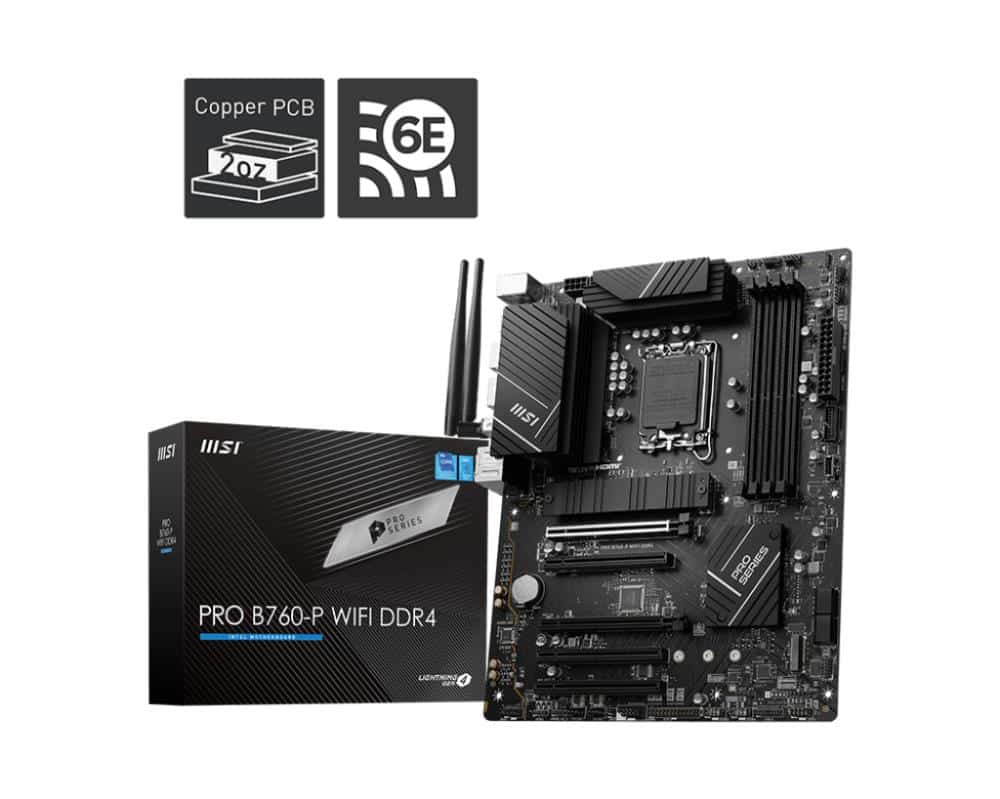 Mainboard | MSI | Intel B760 Express | LGA1700 | ATX | Memory DDR4 | Memory slots 4 | 5xPCI-Express 5.0 16x | 2xM.2 | 1xHDMI | 1xDisplayPort | 4xUSB 2.0 | 2xUSB 3.2 | 1xUSB-C | 1xPS/2 | 1xOptical S/PDIF | 1xRJ45 | 5xAudio port | PROB760-PWIFIDDR4